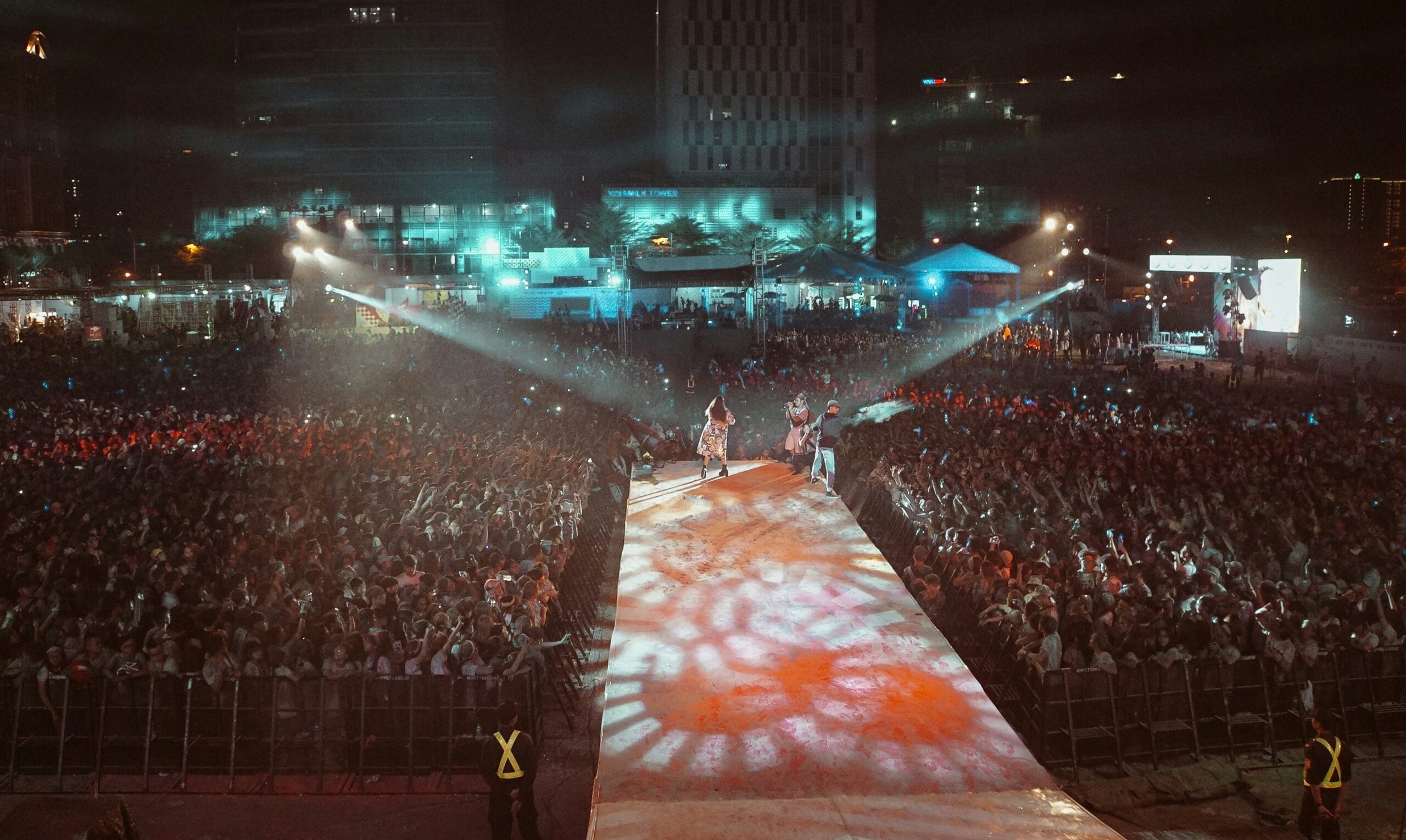 Select from curated performers and visualize their acts in your custom 3D environment. Optional highlight: Drone light shows displaying messages like “Will You Marry Me?”, couple’s initials, or custom sky art.